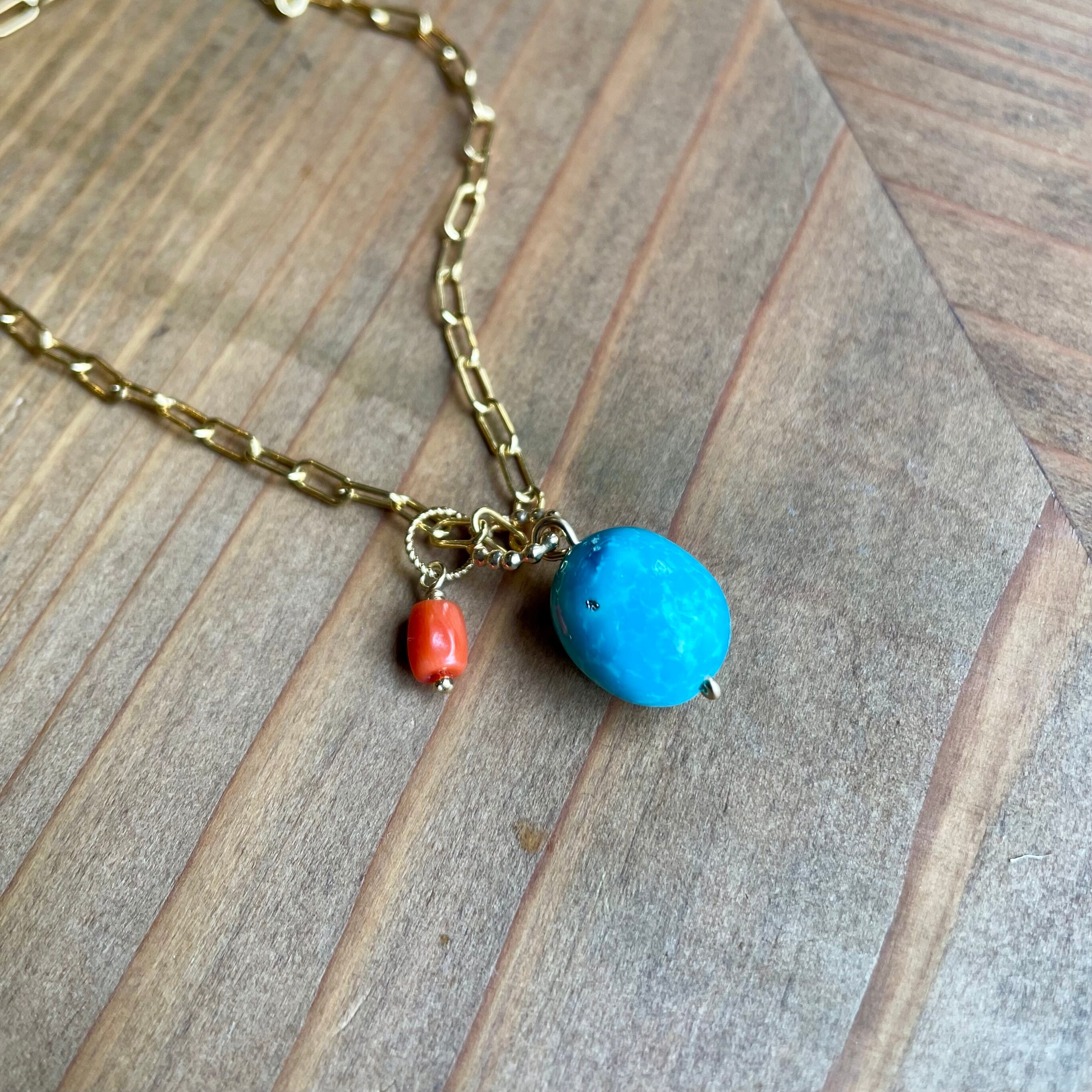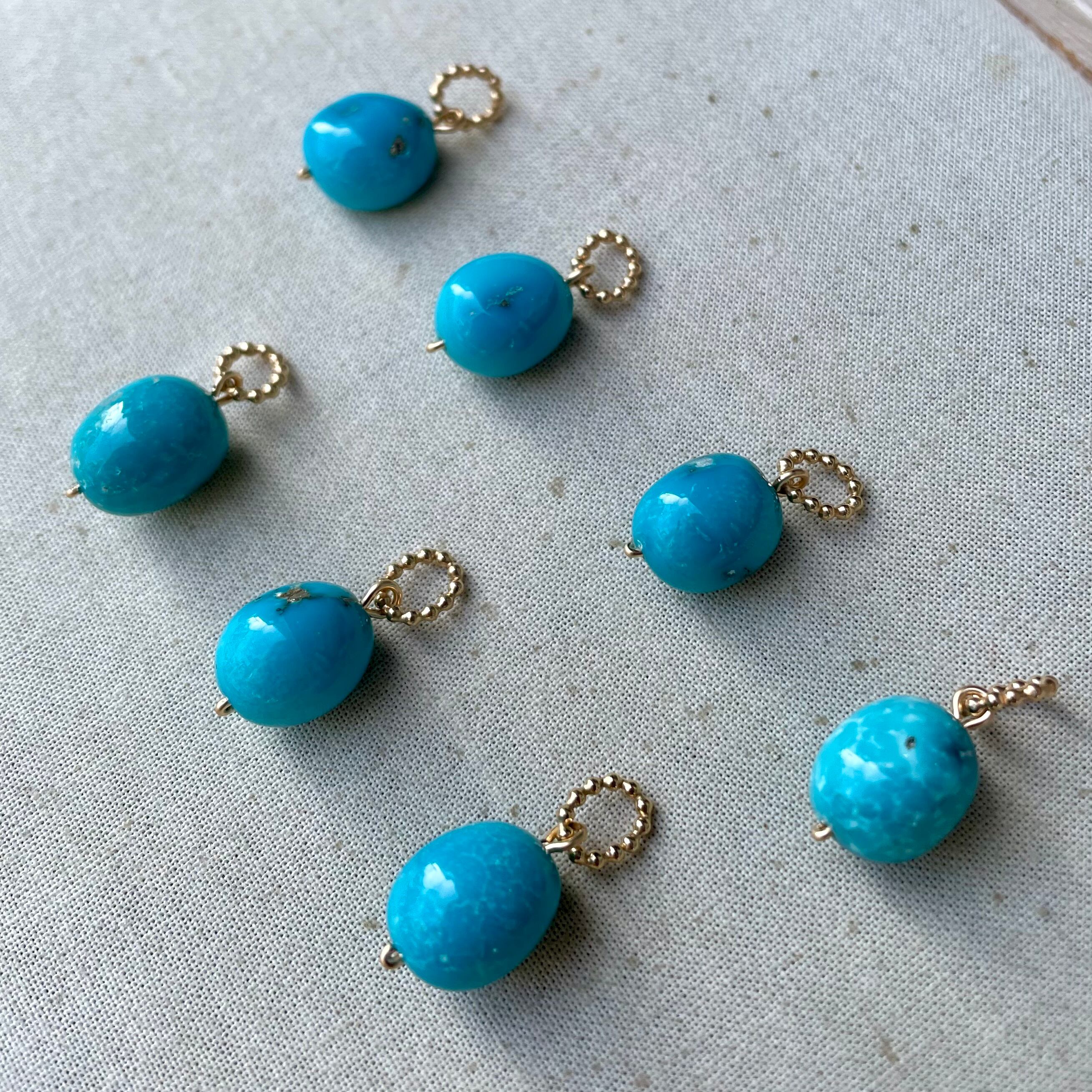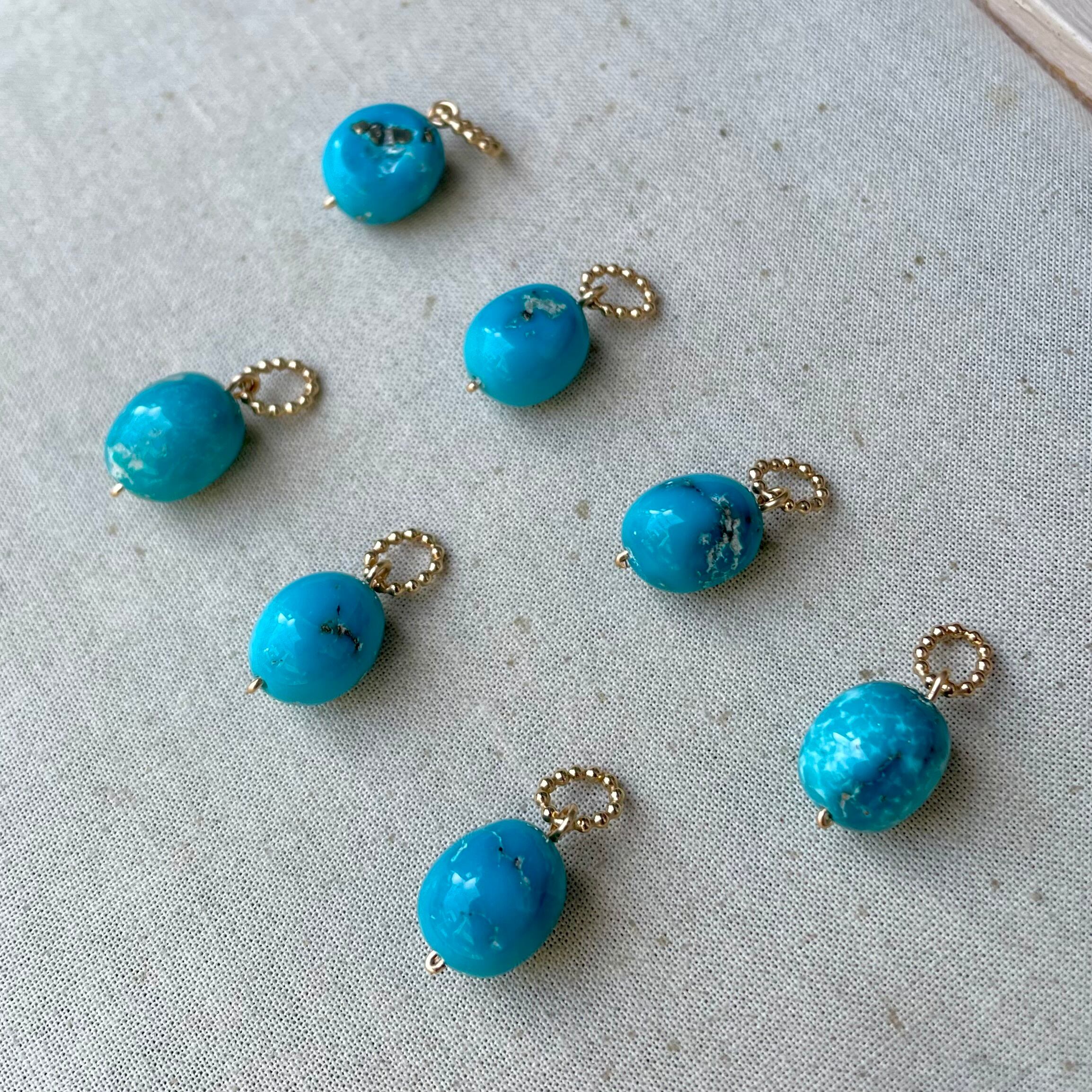鮮やかなスカイブルーのターコイズとして有名なスリーピングビューティーターコイズの大粒ペンダントトップができました。Bonny Port定番のスタイルではありますが、今回のターコイズはインクルージョン(内包物)のパイライトがダイナミックに見えるものや優しい白っぽいマトリックスが見えるものなど個性的な石が魅力的です。