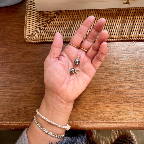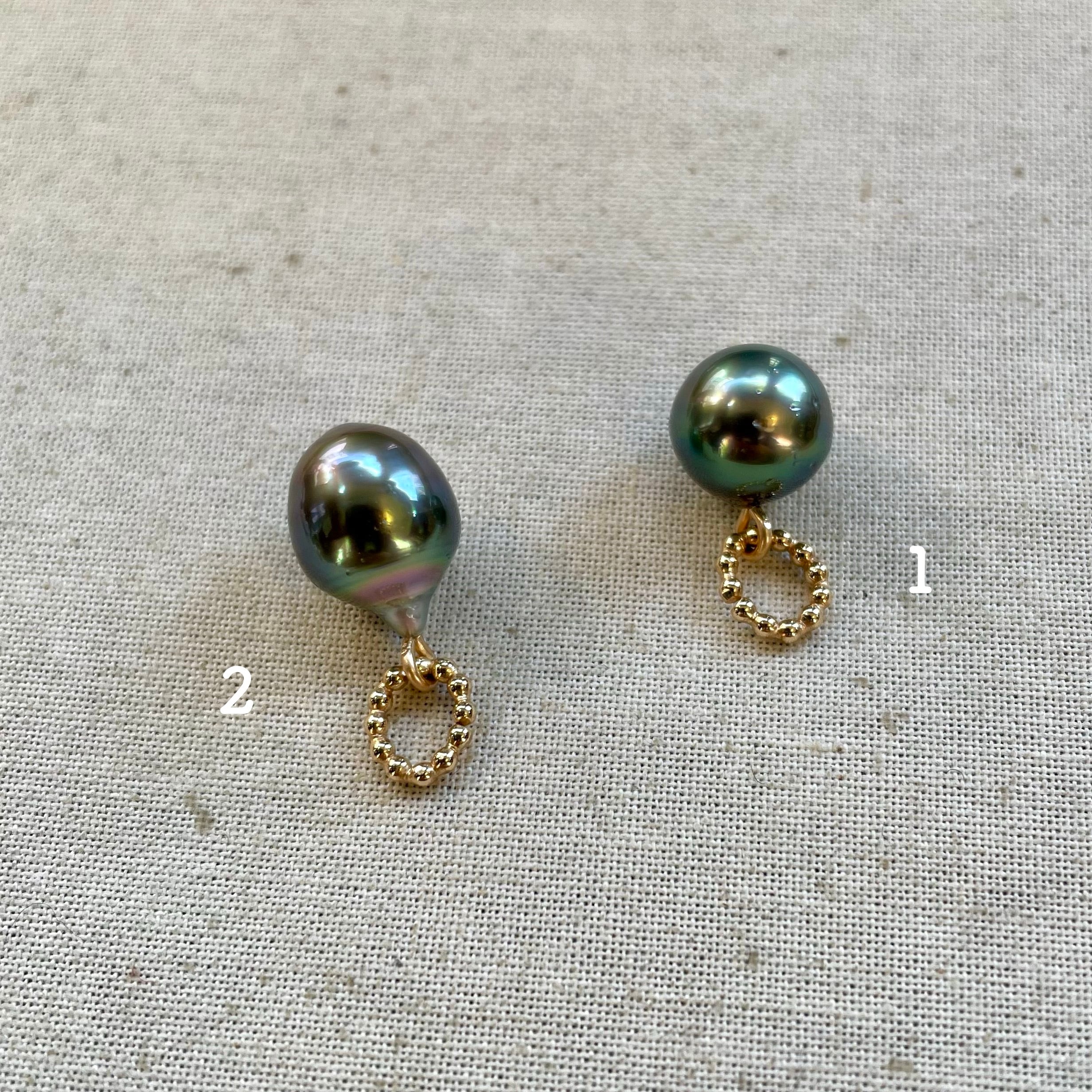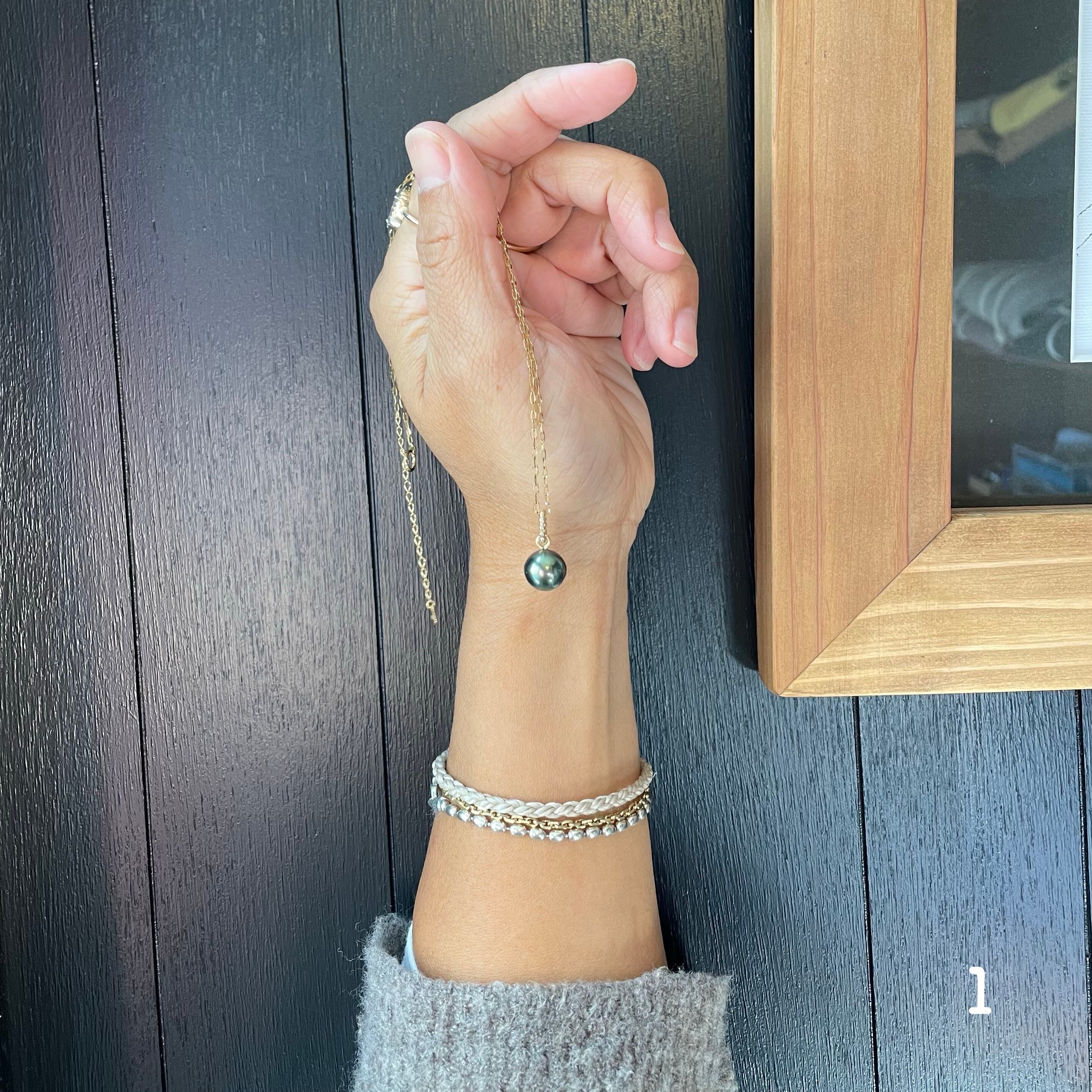 美しい艶のタヒチアンパールトップ第2弾は手頃な大きさの9~10mm。照りもよくミドルカラーの綺麗な真珠です。作りは天板のスタイルになりますが14金ゴールドフィルドの突き刺しとプチプチの楕円カンでシンプルに仕上げました。写真ではゴールドのチェーンやオーバルチェーン細(別売り)に合わせてみました。シンプルに一粒で、また重ね付けなど楽しんでください。