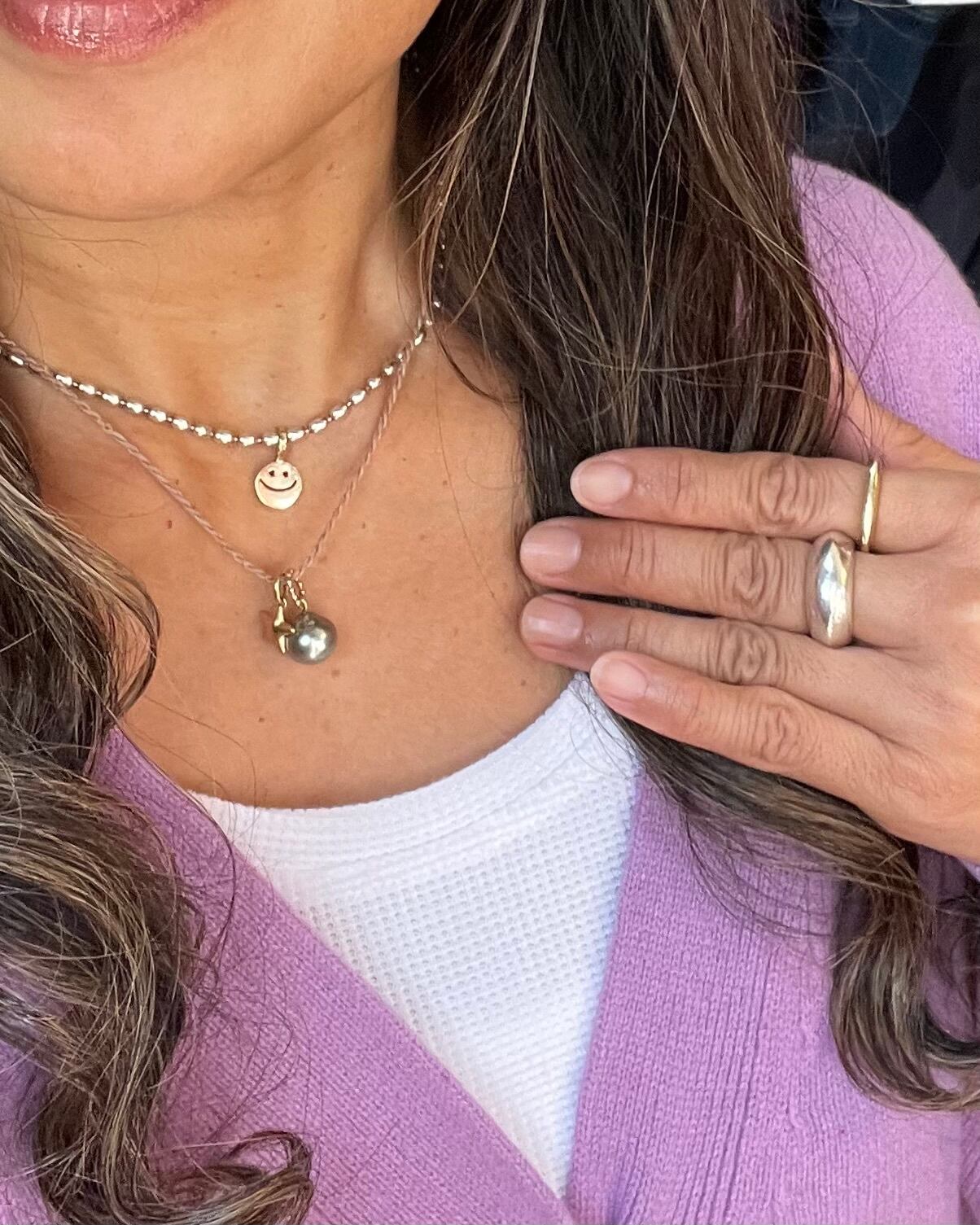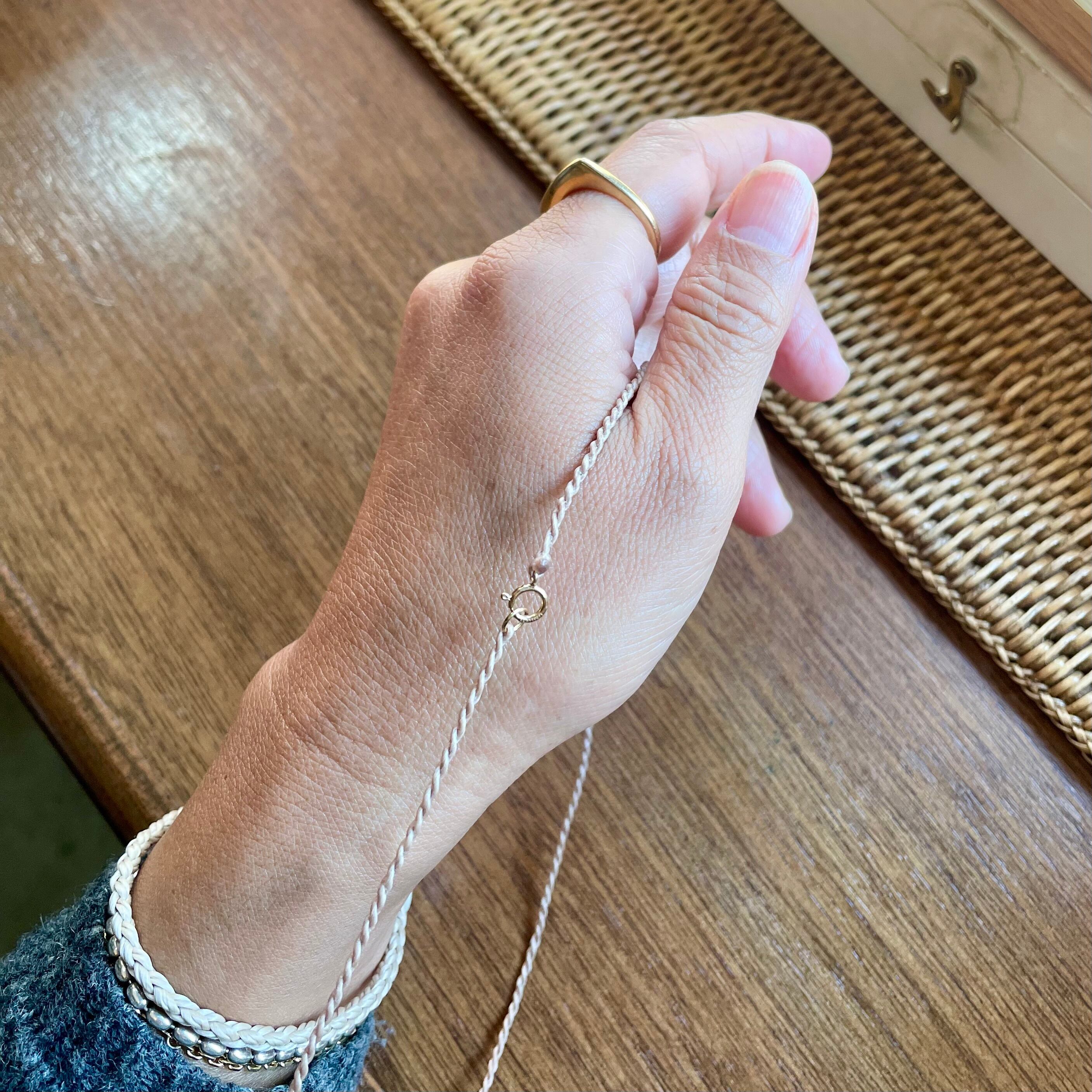 これまでも必要に迫られてたまに作ってきた商品なのですが、WEBストアでご購入いただける形にするのが大変遅くなってしまいました。ネックレス本体の太さは「ターコイズロープネックレス」と同一ですが、差し色がないため黒真珠やその他の色を邪魔することなく自然に馴染んでくれます。