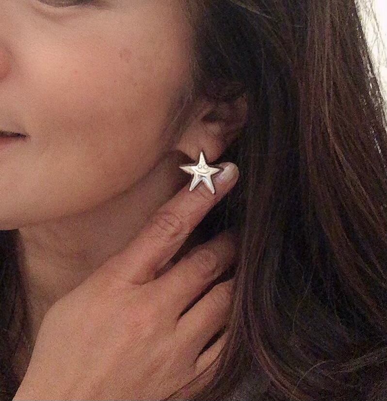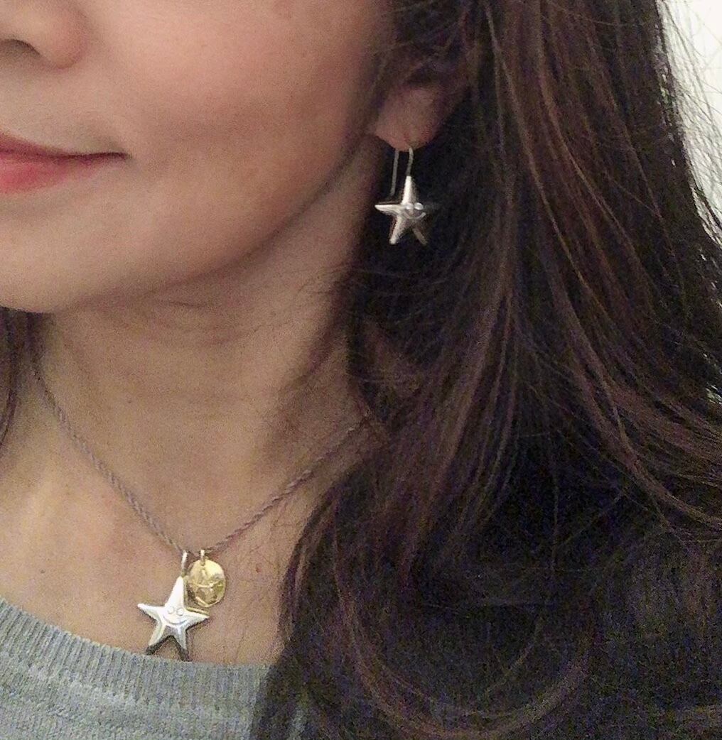 シルバーの鏡面仕上げのお星さまがニッコリ!ハッピーなピアスができました♫