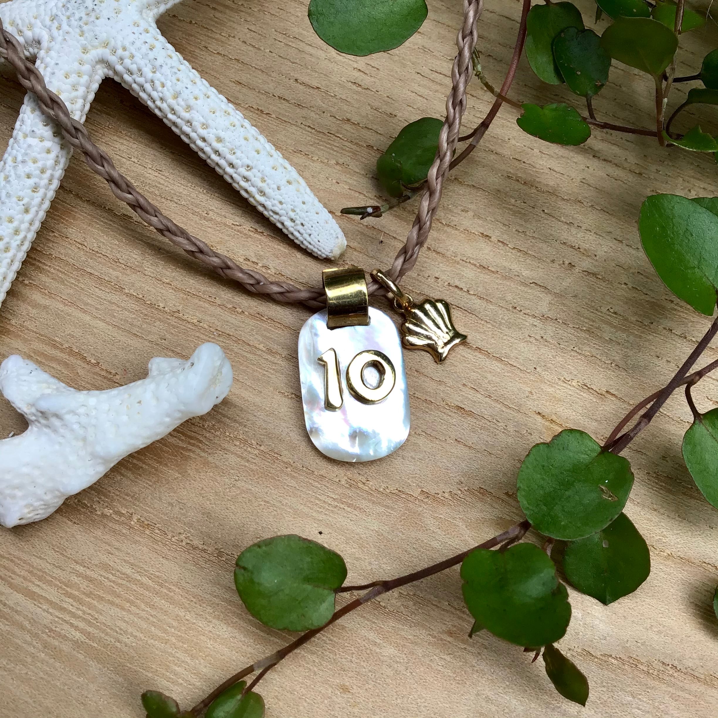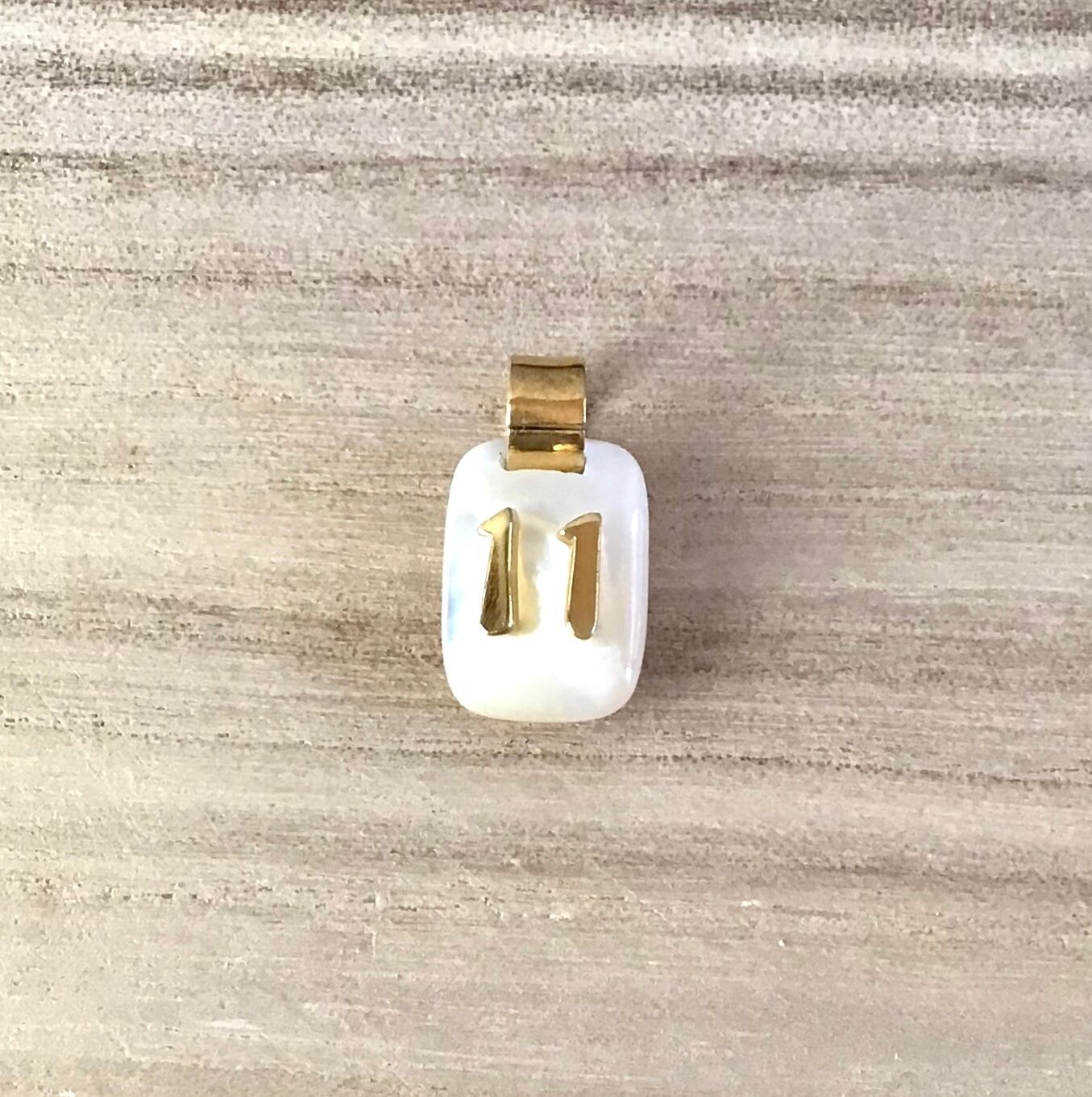 美しい天然の白蝶貝からけずり出して作られるペンダントトップです。自然の素材なのでもちろん同じ輝きのものは一つもありません。数字も板状の真鍮から切り出してアールを付け磨いて作っています。ご注文いただける定番のアクセサリーですが、全て1点ものと言っていいでしょう。