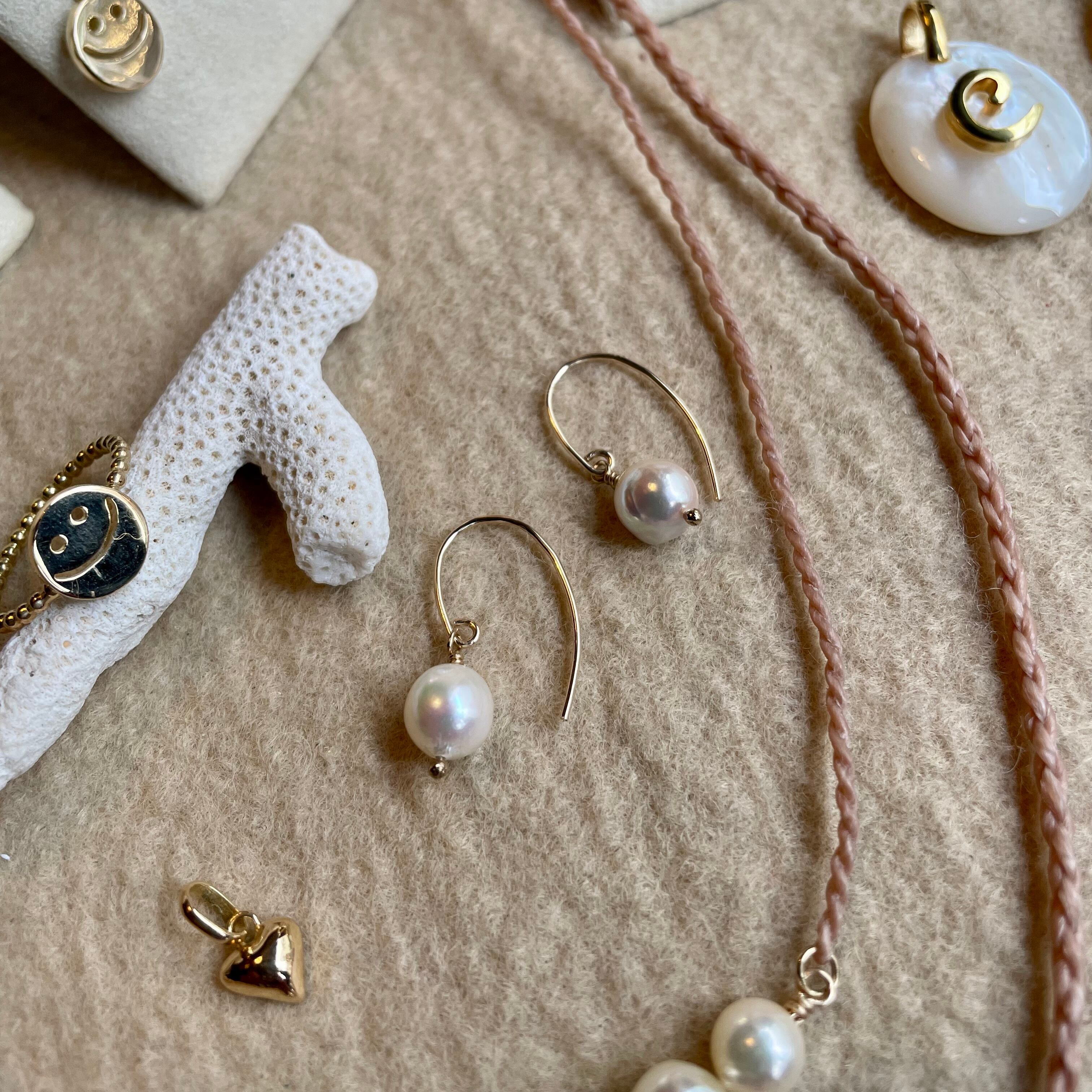ナチュラルカラーで自然な歪みのあるあこや真珠のピアスです。